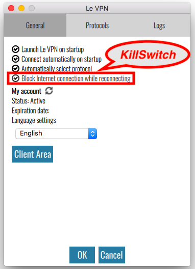 Le VPN называет эту функцию «Блокировать подключение к Интернету при переподключении», и ее можно найти в меню «Настройки» приложения Le VPN.